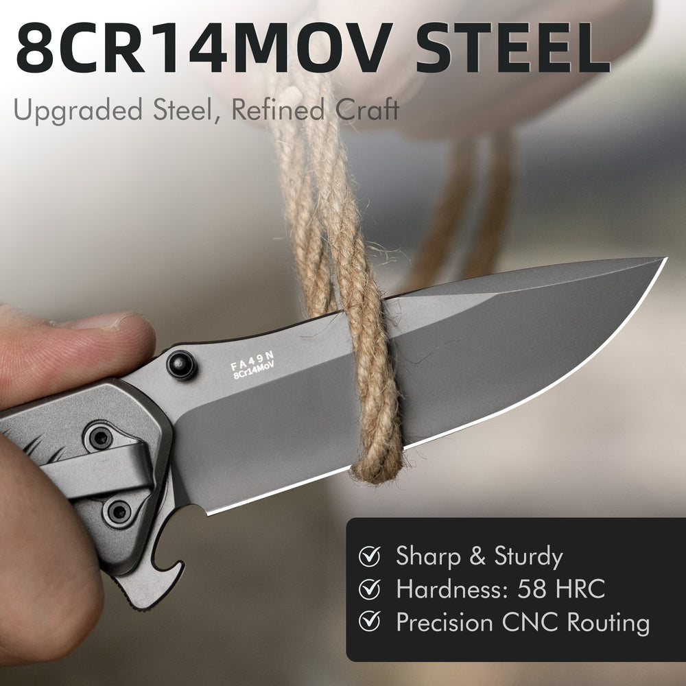 NedFoss FA49N Pro EDC Pocket Knife 4-in-1 Tactical Multitool Folding Knife with Glass Breaker, Seat Belt Cutter & Bottle Opener