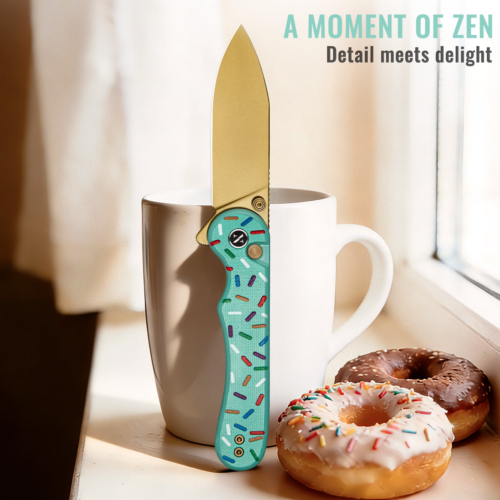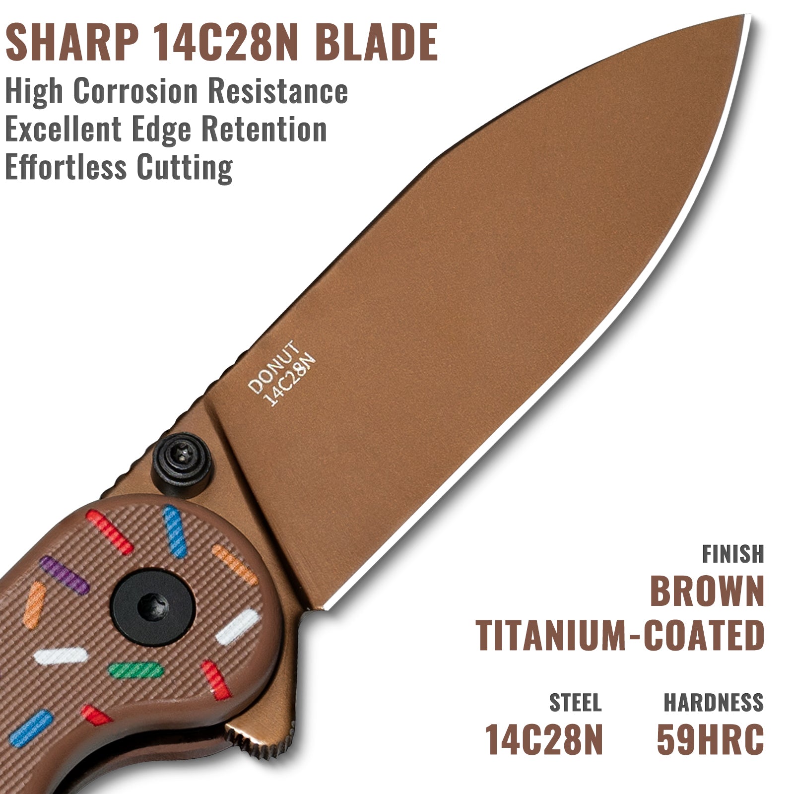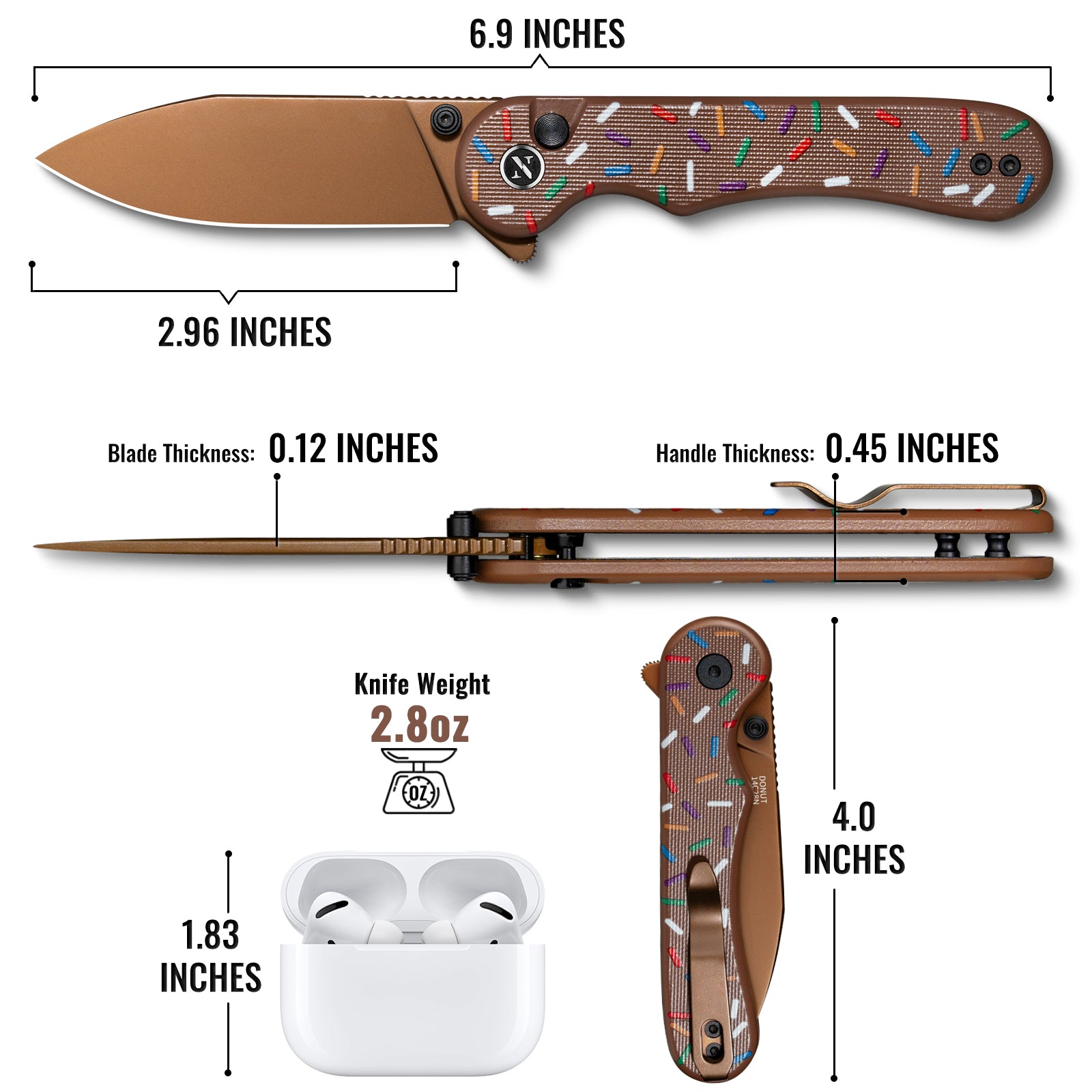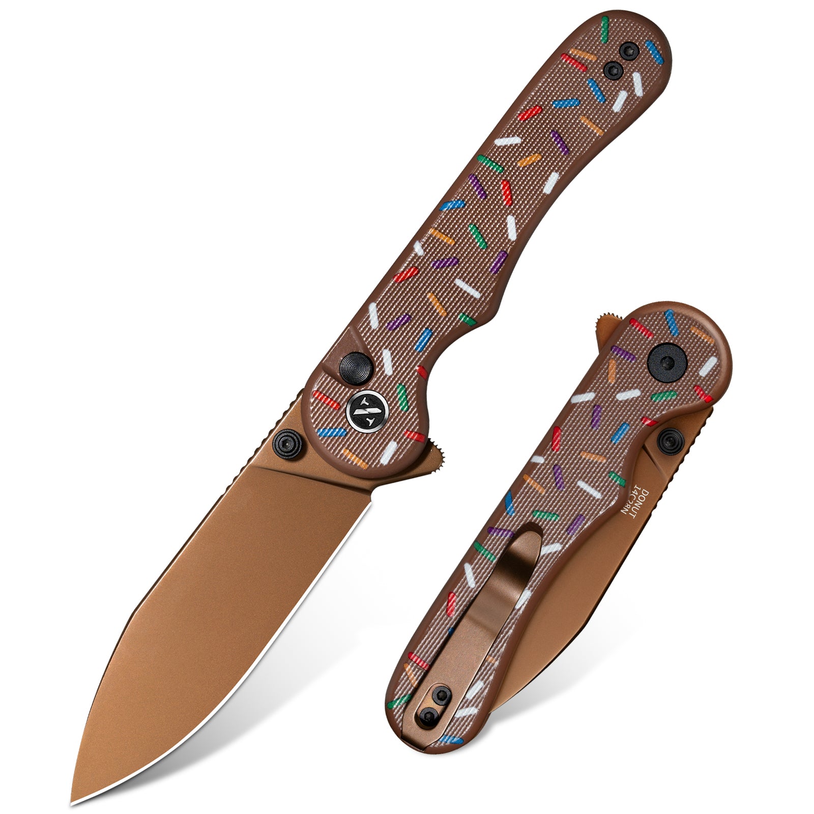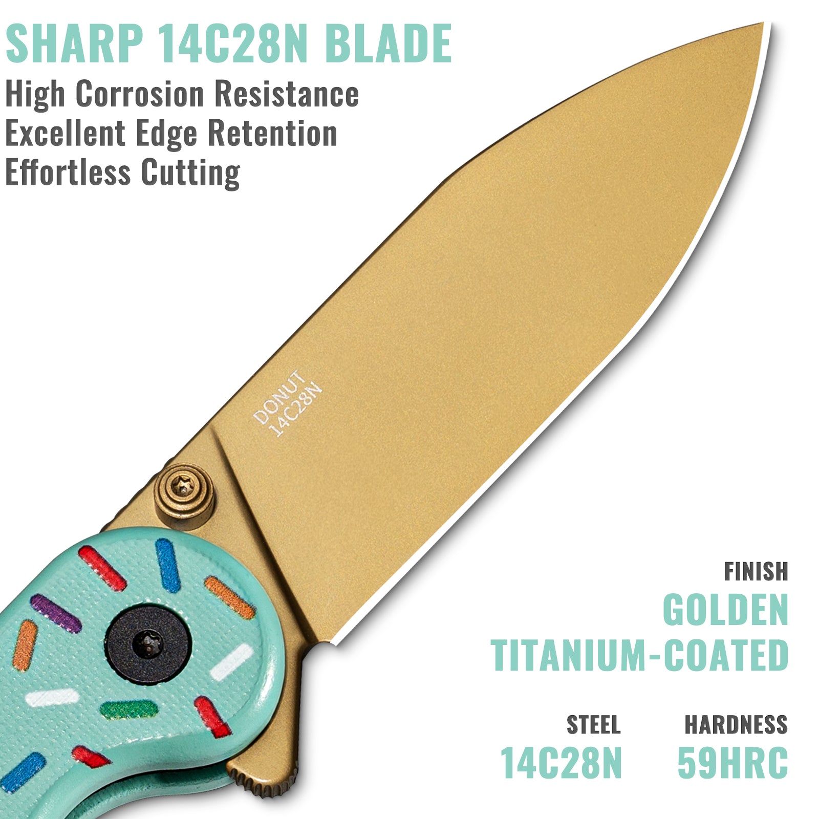 NedFoss DONUT 2.96" 14C28N Steel Blade Pink EDC Pocket Knife with Button Lock
