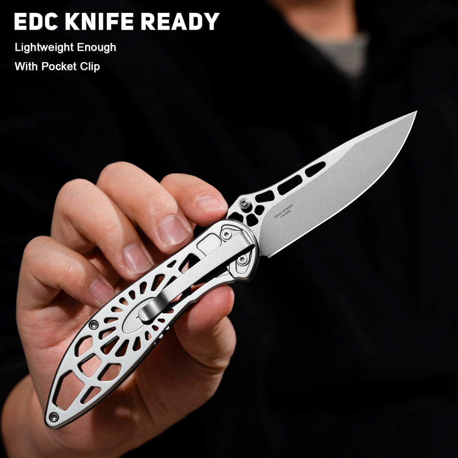 • COOL EDC KNIFE WITH OPEN FRAME DESIGN: This lightweight pocket knife features a full-steel open skeleton frame and double-layer stainless steel liners for a minimalist yet durable everyday carry tool; Unique spider-web handle cutouts enhance grip and style