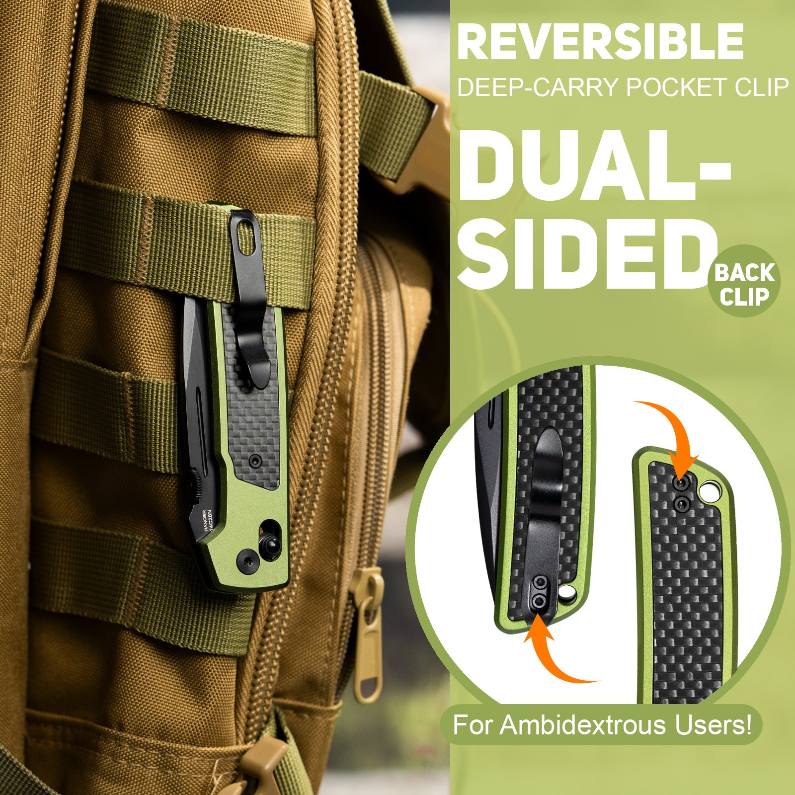 Perfect Everyday Carry – Weighs under 3 oz with a reversible deep-carry clip and lanyard hole for flexible right or left carry—ideal for hiking, camping, hunting, or daily tasks.