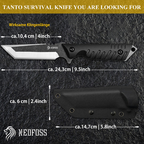 NedFoss Tanto Fixed Blade Messer mit Scheide, 9,6 Zoll Full Tang Bushcraft Messer mit Kydex Scheide, 4'' Tanto Klinge mit strapazierfähigem, rutschfestem G10 Griff, Coole Messer für Männer (Dragon)