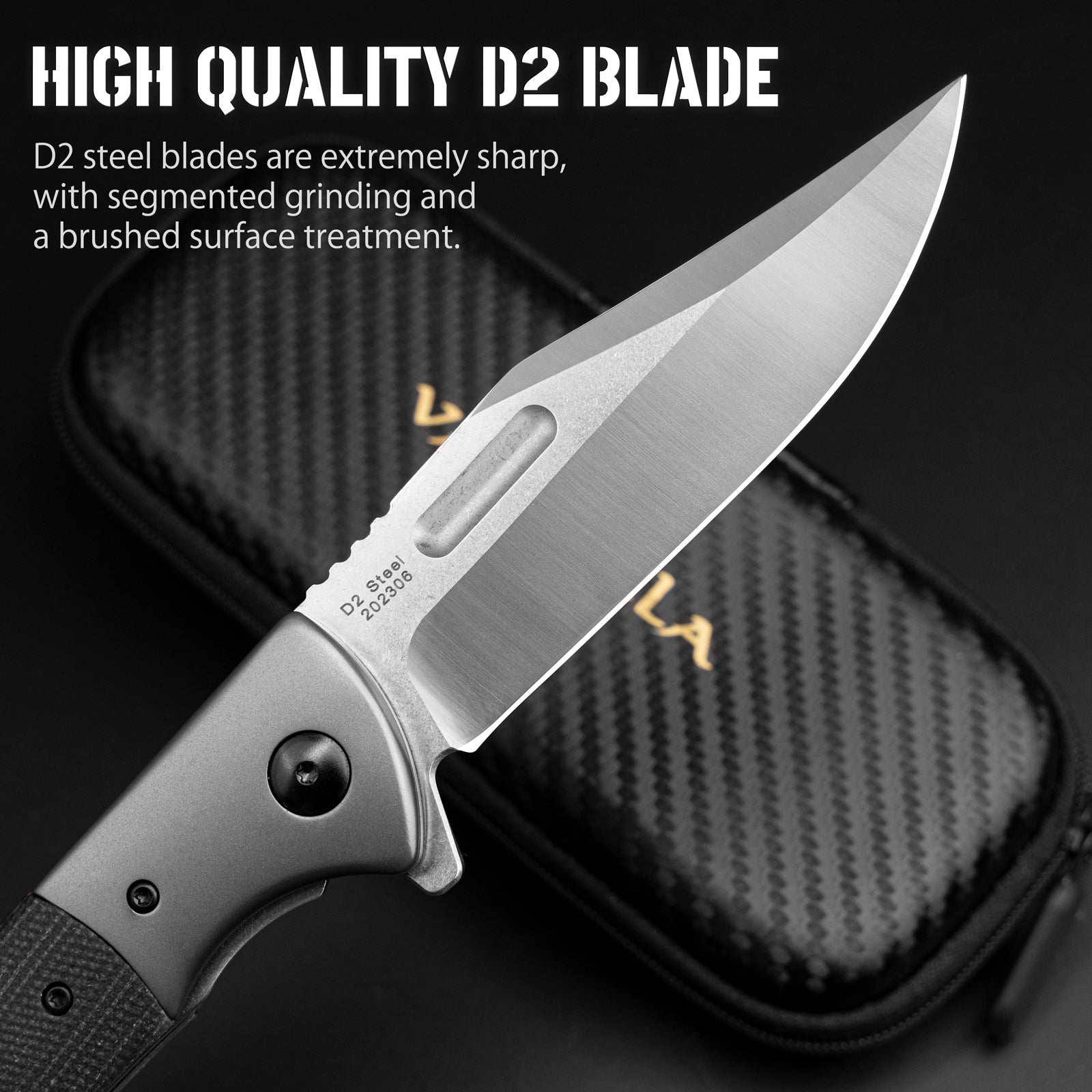 VALHALLA PTEROSAUR Pocket Knife, 3.9'' D2 Steel Folding Knife with Micarta Handle, Pocket Knife for Men, Cool Knives, Hunting Knife, Gifts for Men