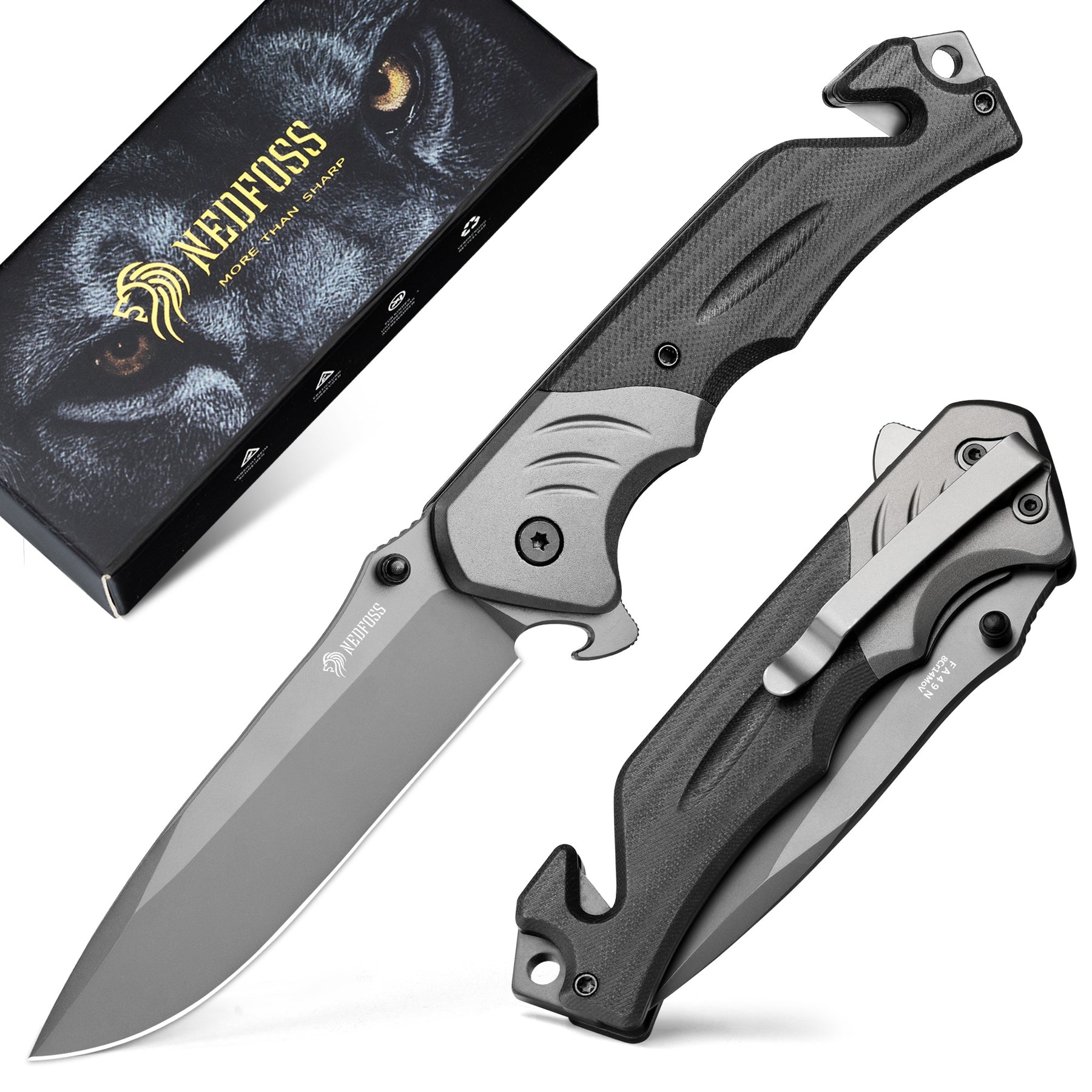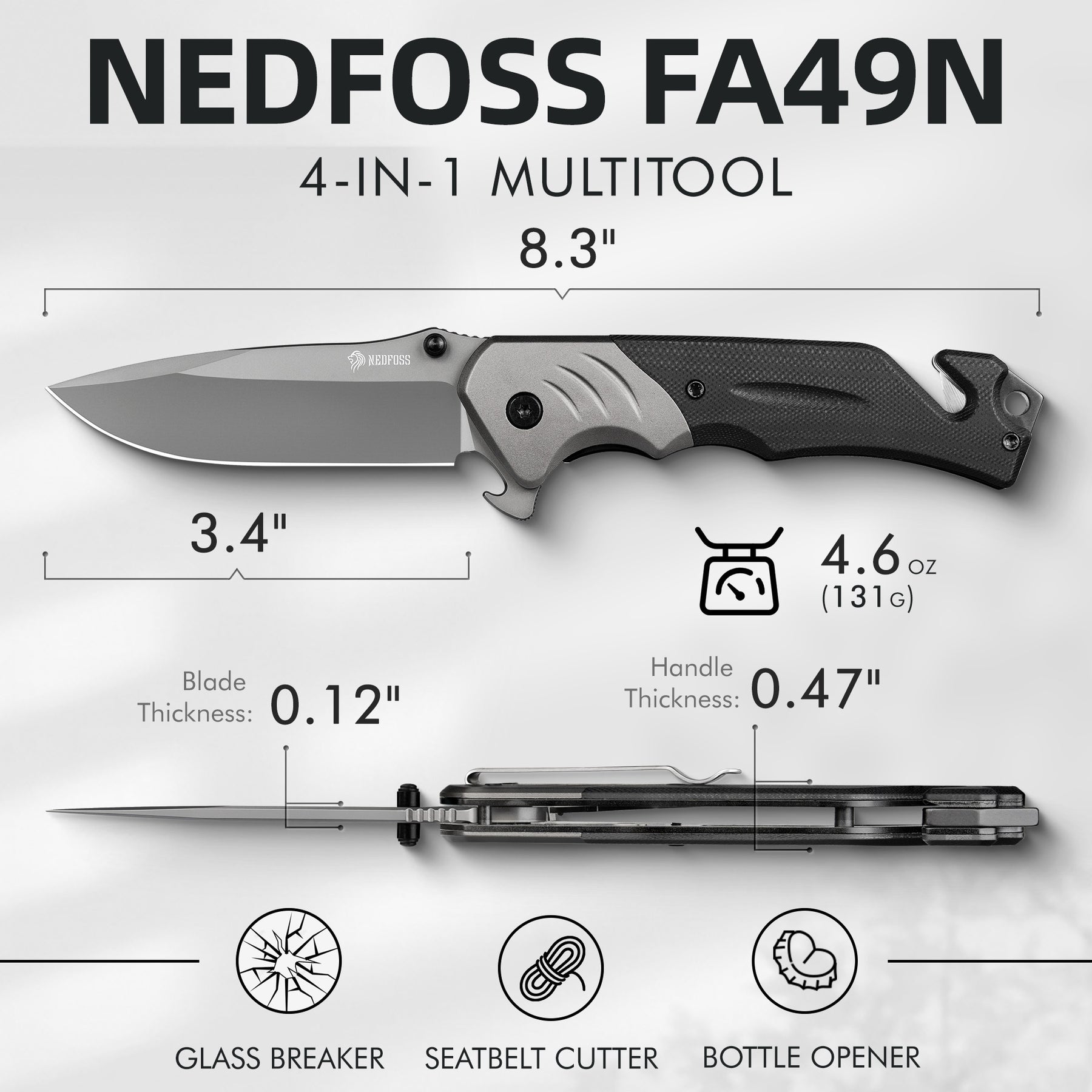 NedFoss FA49N Pro EDC Pocket Knife 4-in-1 Tactical Multitool Folding Knife with Glass Breaker, Seat Belt Cutter & Bottle Opener