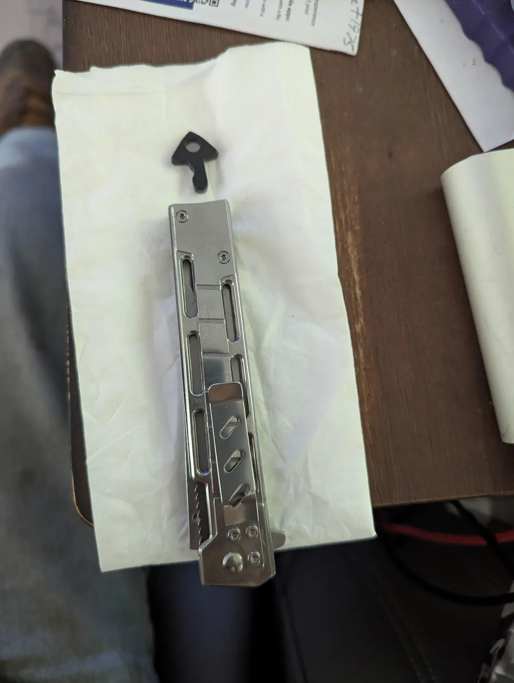 The knife is fantastic. But they sent me a black glass breaker which obviously doesn’t match the knife and messes up the entire aesthetic. Hopefully they will send me the correct silver piece.